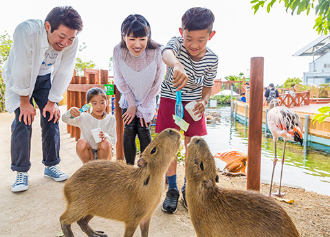 カピバラやマーラ、フラミンゴたちなどさまざまな生きものたちを間近で観察!