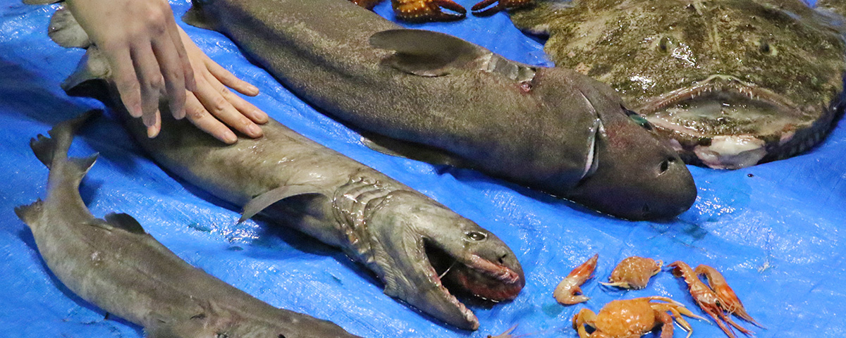 ミツクリザメ、ラブカ、メンダコなど大小さまざまな深海生物約30種の標本タッチに加え、ヌタウナギ、オオグソクムシなどにさわれるイベントを開催!参加者には、深海生物を学べるオリジナル冊子をプレゼント。