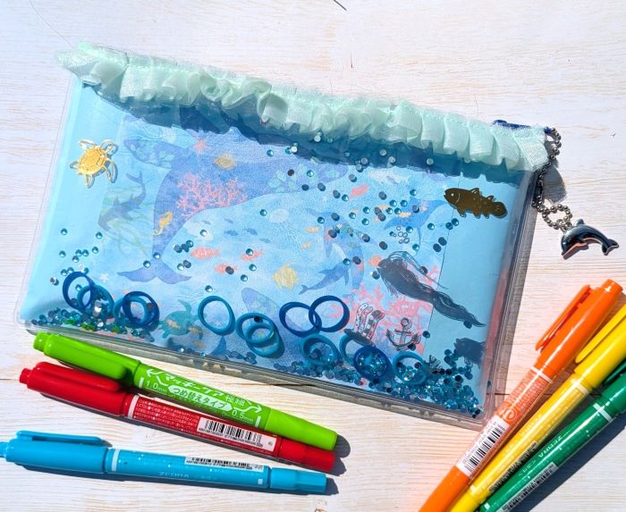 海の生き物たちのアイテムを使ってつやのあるオリジナルのシールが作れます